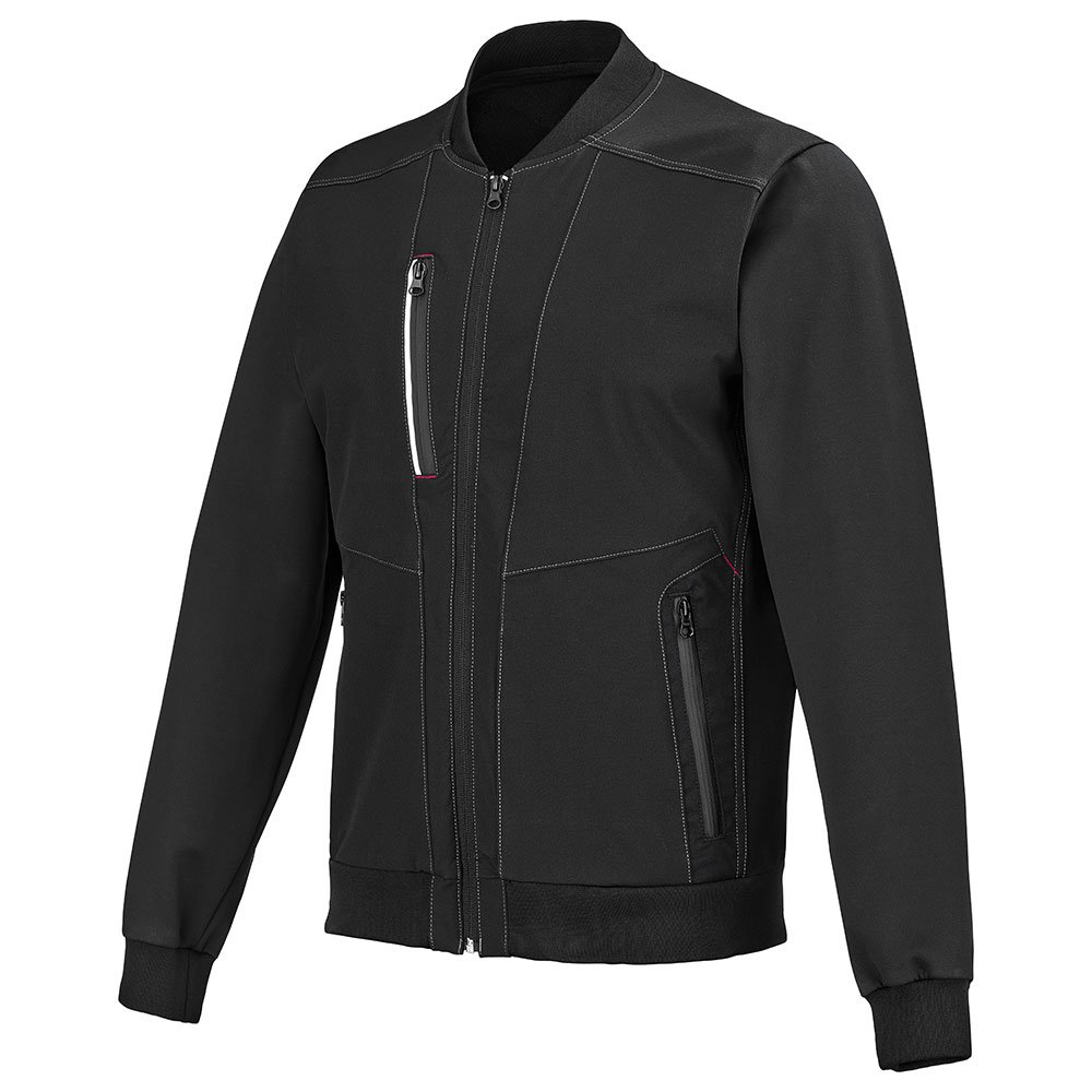 Col teddy en bord-côte | Poche poitrine droite verticale avec fermeture à glissière enduite noir avec bande rétro-réfléchissante | Poches basses repose-main fermées par zip enduit noir + poche intérieure bas gauche fermée par velcro | Poignets et bas de vêtement avec finition bord-côte | Bandes collées 15mm rétro-réfléchissantes