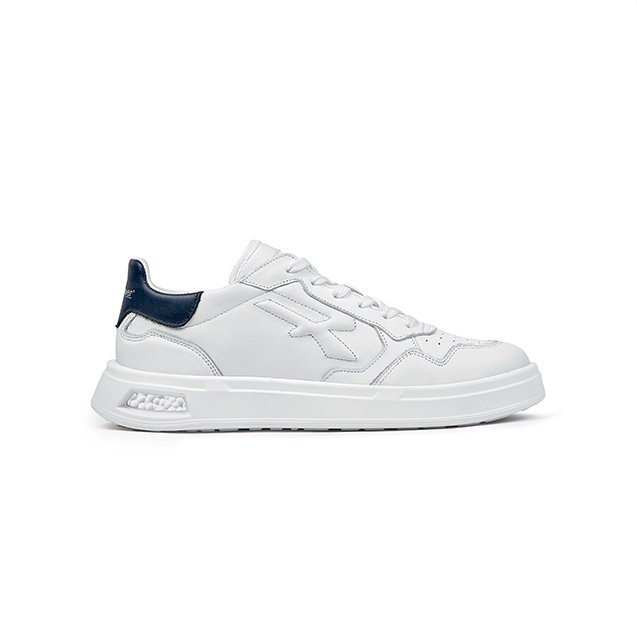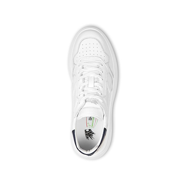 La tige en cuir blanc souple et les détails bleus rendent cette basket adaptée à toutes les occasions.
