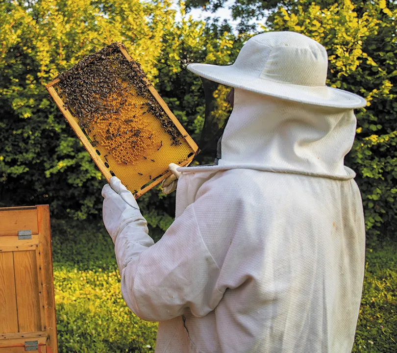 • Gant d’apiculteur en cuir fleur. Pouce ailé pour une meilleure mobilité.