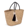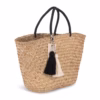 100% paille. Panier shopping classique avec tressage en fibres de paille. Pompon bicolore faisant office d’élément décoratif en coton et grande étiquette pour personnaliser facilement le produit.