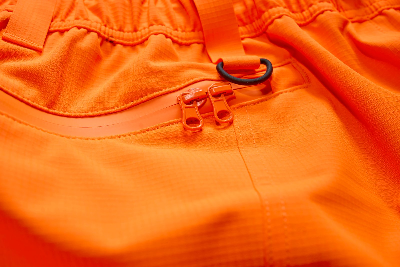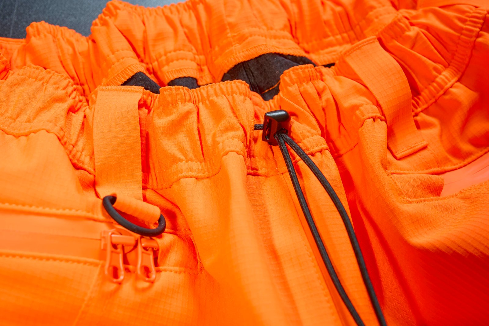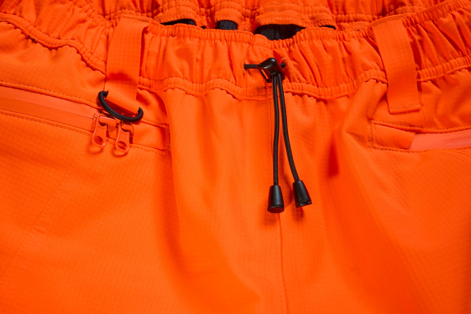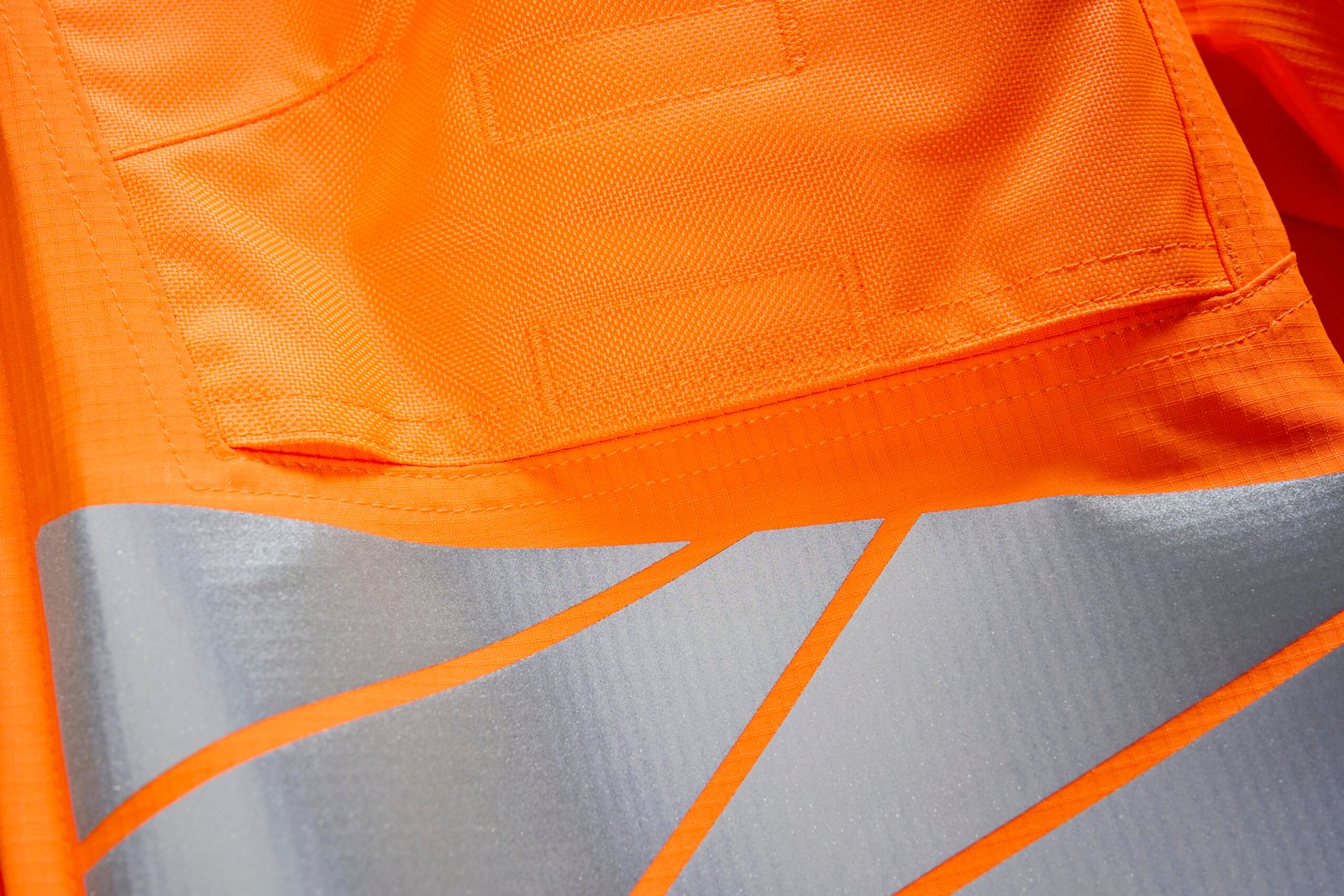Tissu fluorescent avec bandes rétroréfléchissantes. Un tissu très résistant à l’usure, respirant, imperméable et coupe-vent. Coutures thermocollées. Ouverture zippée frontale des deux côtés pour pouvoir sortir les poches flottantes du pantalon en-dessous. Jambes ergonomiques. Passants de ceinture. Anneau en D. Elastique et cordon de serrage à la taille. Poche pour mètre pliant renforcée, avec une petite poche superposée. Poches genouillères reglables en polyester. Réglage facile de la hauteur de la poche genouillère. Zip sous rabat coupe-vent sur le côté extérieur des jambes. Bord-côtes à l’intérieur en bas au niveau du pied. Les genouillères 00418-100, 00718-100, 50451-916 et 20118-915 sont fortement recommandées pour ce modèle. Double certification compatible avec le modèle de genouillères SHORT ou LONG selon la norme EN 14404.