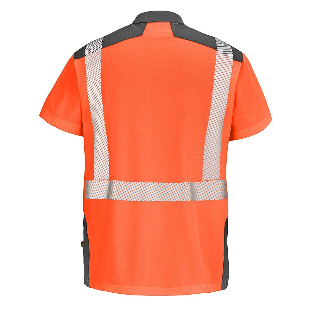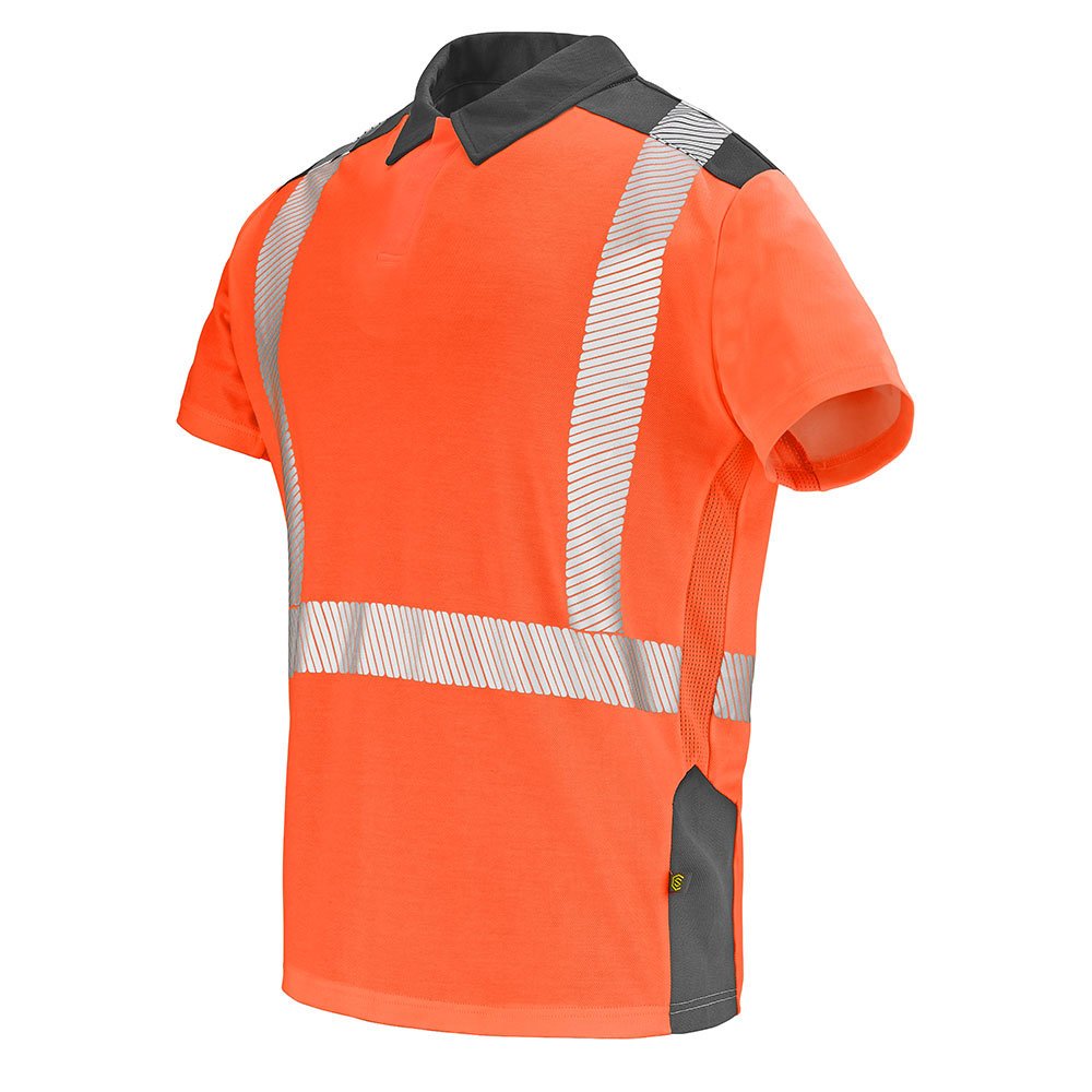 Bande de propreté à l’encolure | Col polo avec patte de boutonnage fermée par grippers cachés | Mesh aéré HV | Rétro-réfléchissantes segmentées thermocollées 60mm