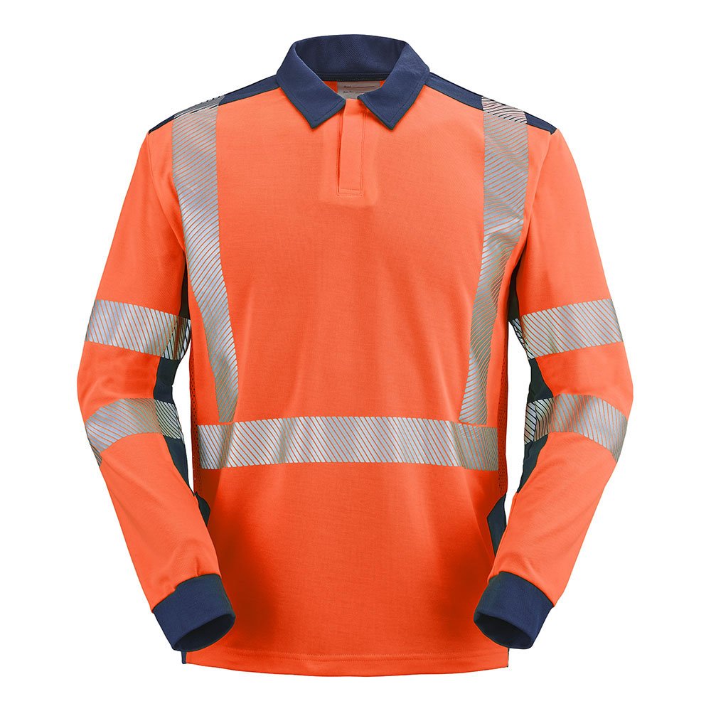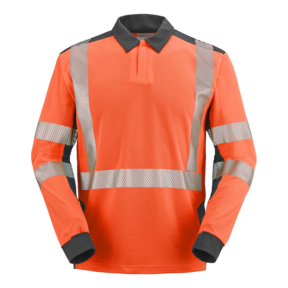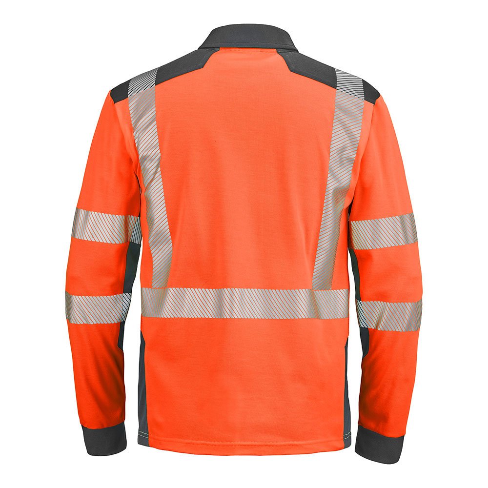 Bande de propreté à l’encolure | Col polo avec patte de boutonnage fermée par grippers cachés | Mesh aéré HV | Rétro-réfléchissantes segmentées thermocollées 50mm