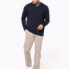 50% coton / 50% acrylique (jauge 12). Coupe ajustée. Bord-côte du col double épaisseur. Bande de propreté à l’encolure.