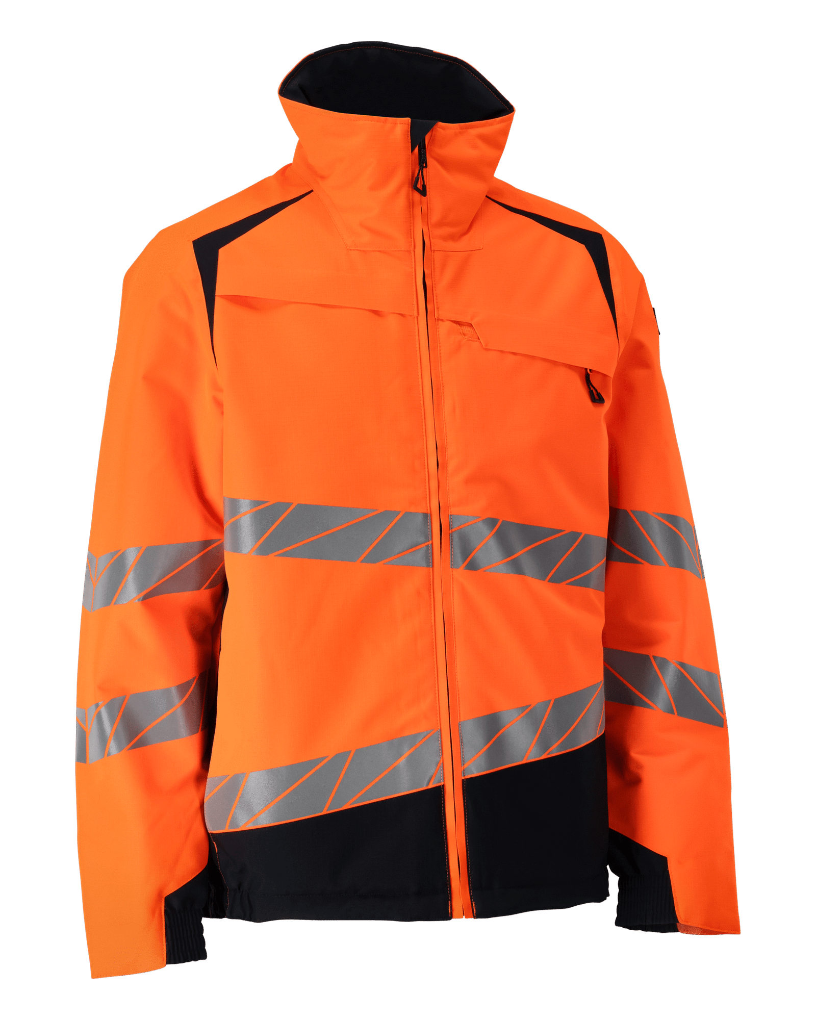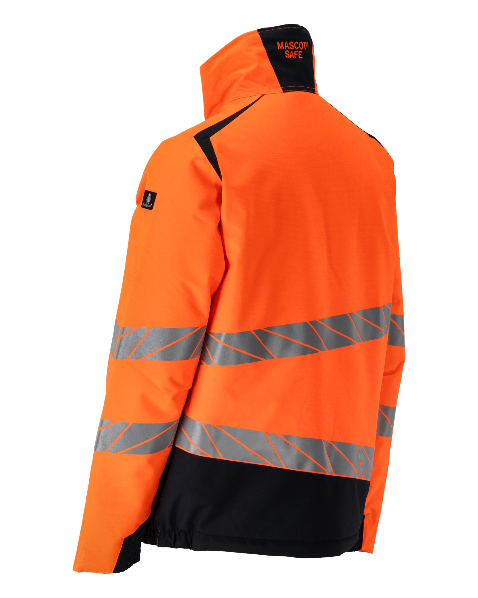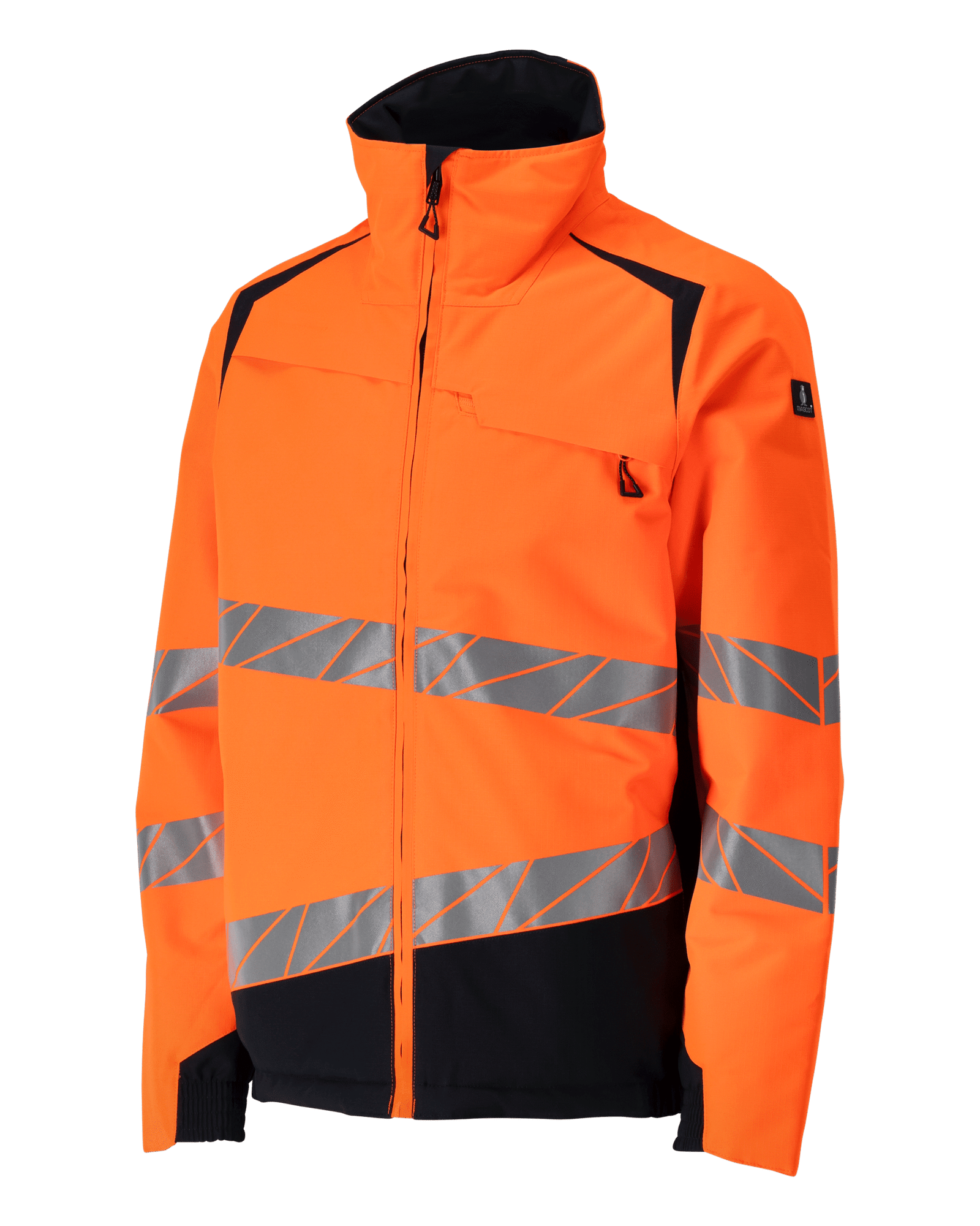Fluorescent(e) avec bandes rétroréfléchissantes transversales en biais. Coupe-vent, hydrofuge et permettant au corps de respirer. Avec CLIMASCOT® Lightweight Insulation. Bicolore. Col montant. Fermeture zippée et double rabat coupe-vent. Poche intérieure en maille filet. Poche poitrine zippée. Anneau en D. Poches latérales avec fermeture bouton-pression non visible/recouvert. Elastique aux poignets. Elastiques des deux côtés du bord inférieur. Zip intérieur au bas du dos permettant la réalisation d’impressions/broderies. Afin d’atteindre la norme EN ISO 20471 classe 3, les tailles XS et S n’ont pas de couleur contrastée.