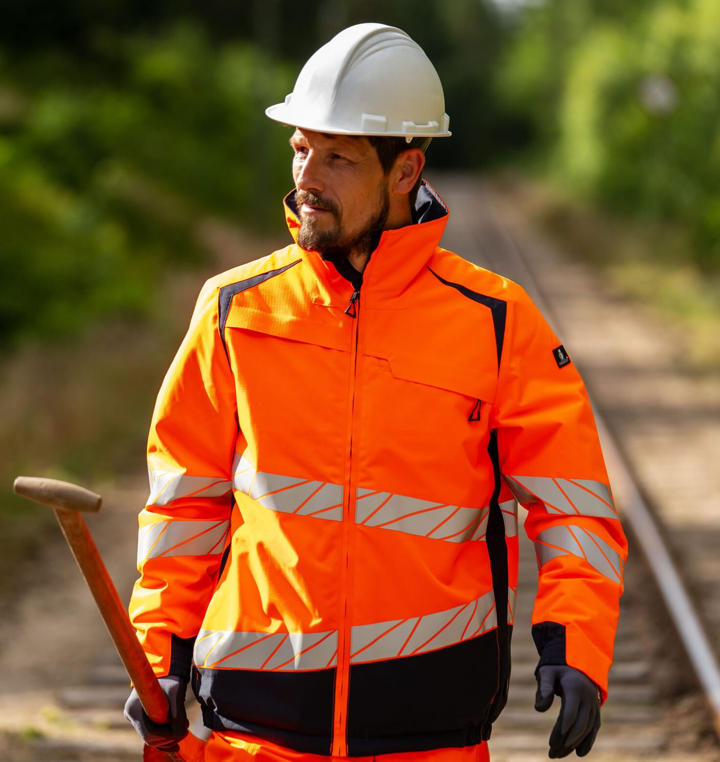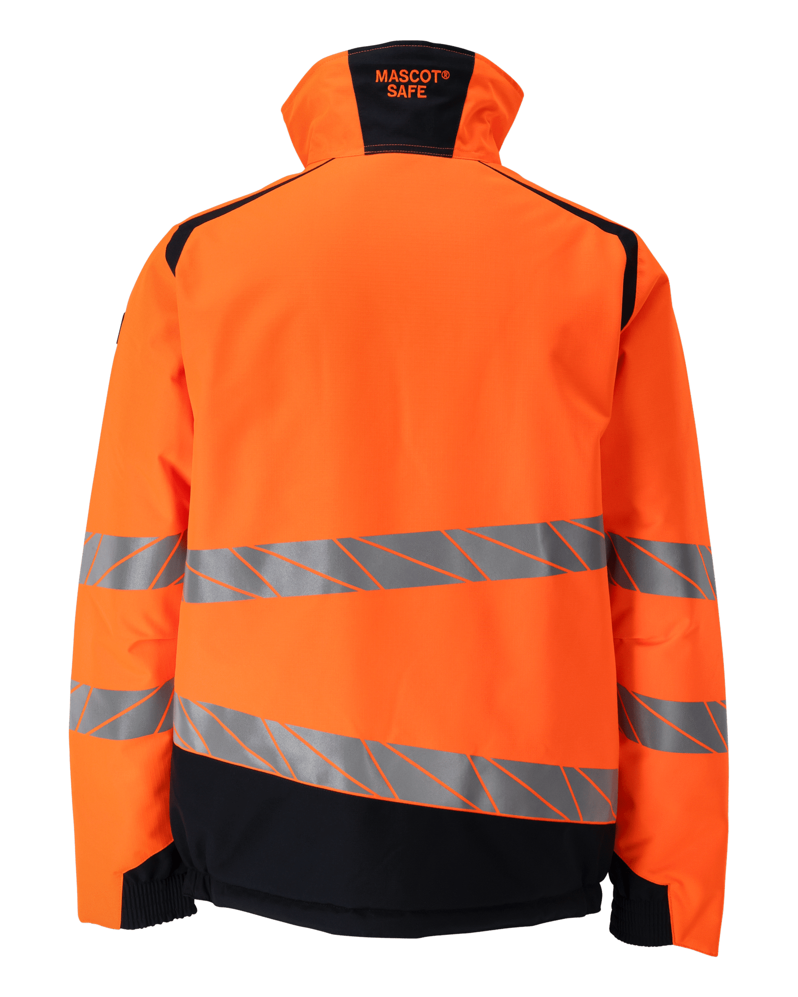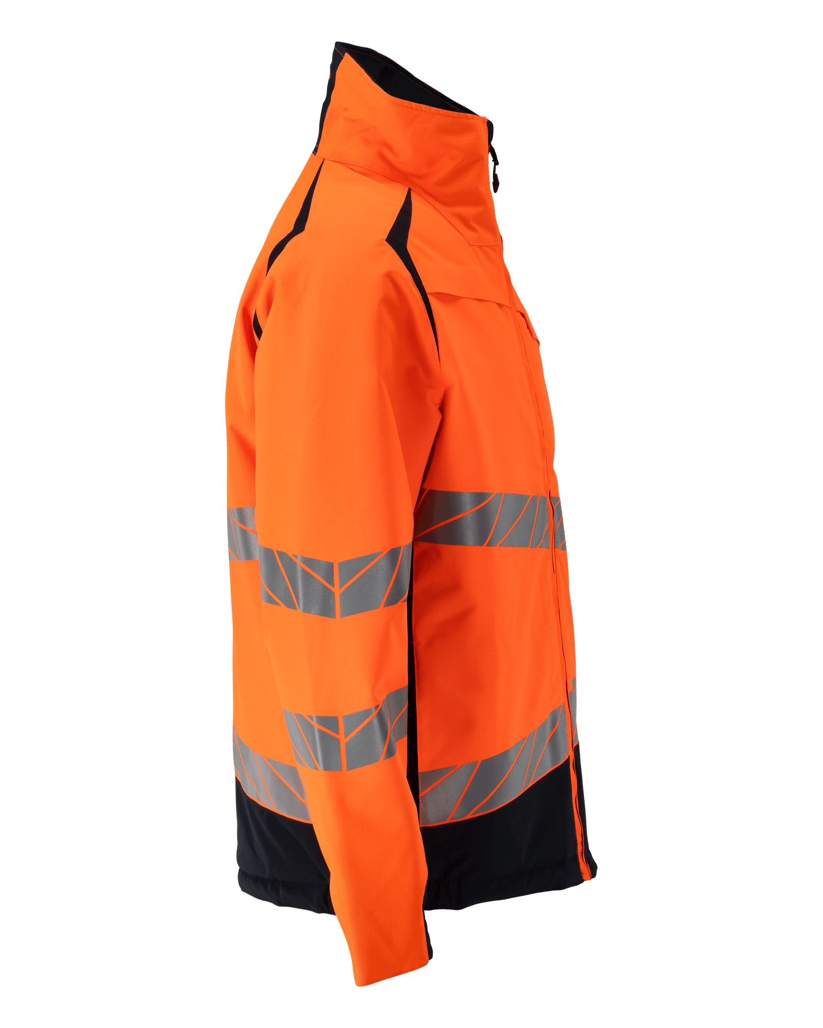 Fluorescent(e) avec bandes rétroréfléchissantes transversales en biais. Coupe-vent, hydrofuge et permettant au corps de respirer. Avec CLIMASCOT® Lightweight Insulation. Bicolore. Col montant. Fermeture zippée et double rabat coupe-vent. Poche intérieure en maille filet. Poche poitrine zippée. Anneau en D. Poches latérales avec fermeture bouton-pression non visible/recouvert. Elastique aux poignets. Elastiques des deux côtés du bord inférieur. Zip intérieur au bas du dos permettant la réalisation d’impressions/broderies. Afin d’atteindre la norme EN ISO 20471 classe 3, les tailles XS et S n’ont pas de couleur contrastée.